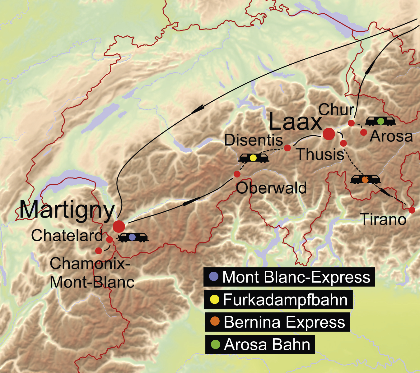 • Fahrt mit dem Mont-Blanc Express von Martigny nach Châtelard