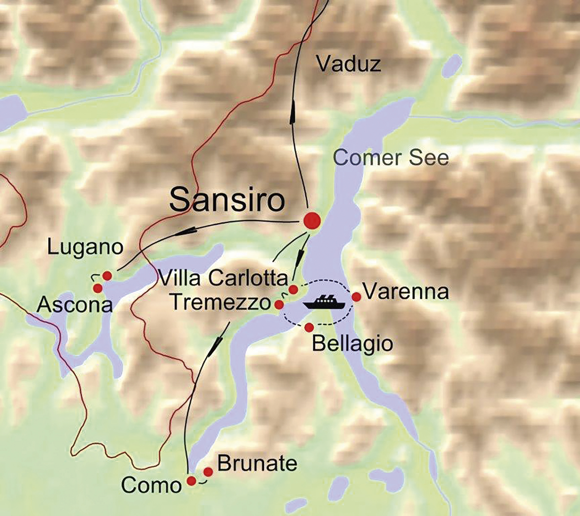 mit Como, Bellagio, Montepiatto, Lugano und Ascona