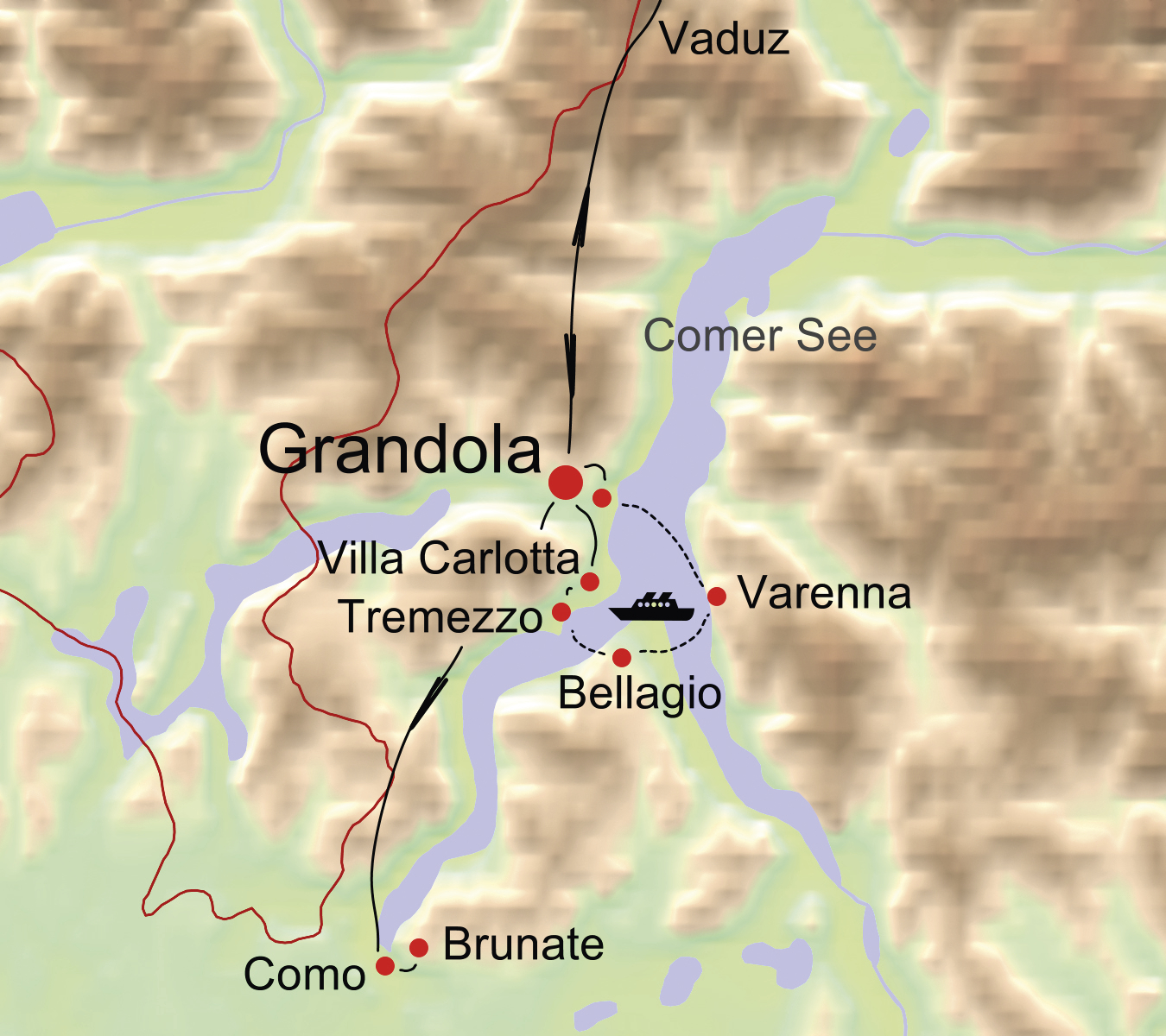 Abfahrt 7.00 Uhr Augsburg – Landsberg – Bregenz – Chur. Bummeln Sie durch die älteste Stadt der Schweiz und lassen Sie das historische Flair auf sich wirken. Ihre Fahrt geht weiter zur westlichen Seite des Comer Sees. Sie erreichen Ihr 3-Sterne-Hotel Merloni in Grandola ed Uniti.