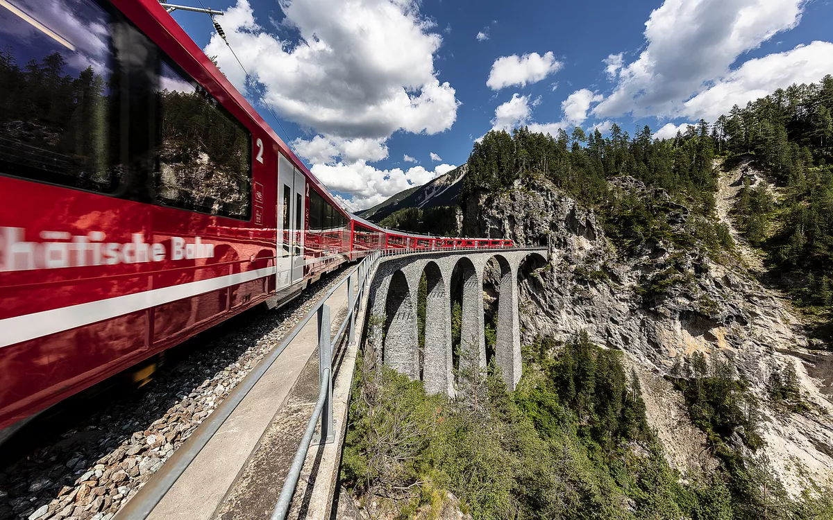 • Fahrt mit dem Glacier-Express (2. Klasse Panoramawagen) von Chur nach Brig
