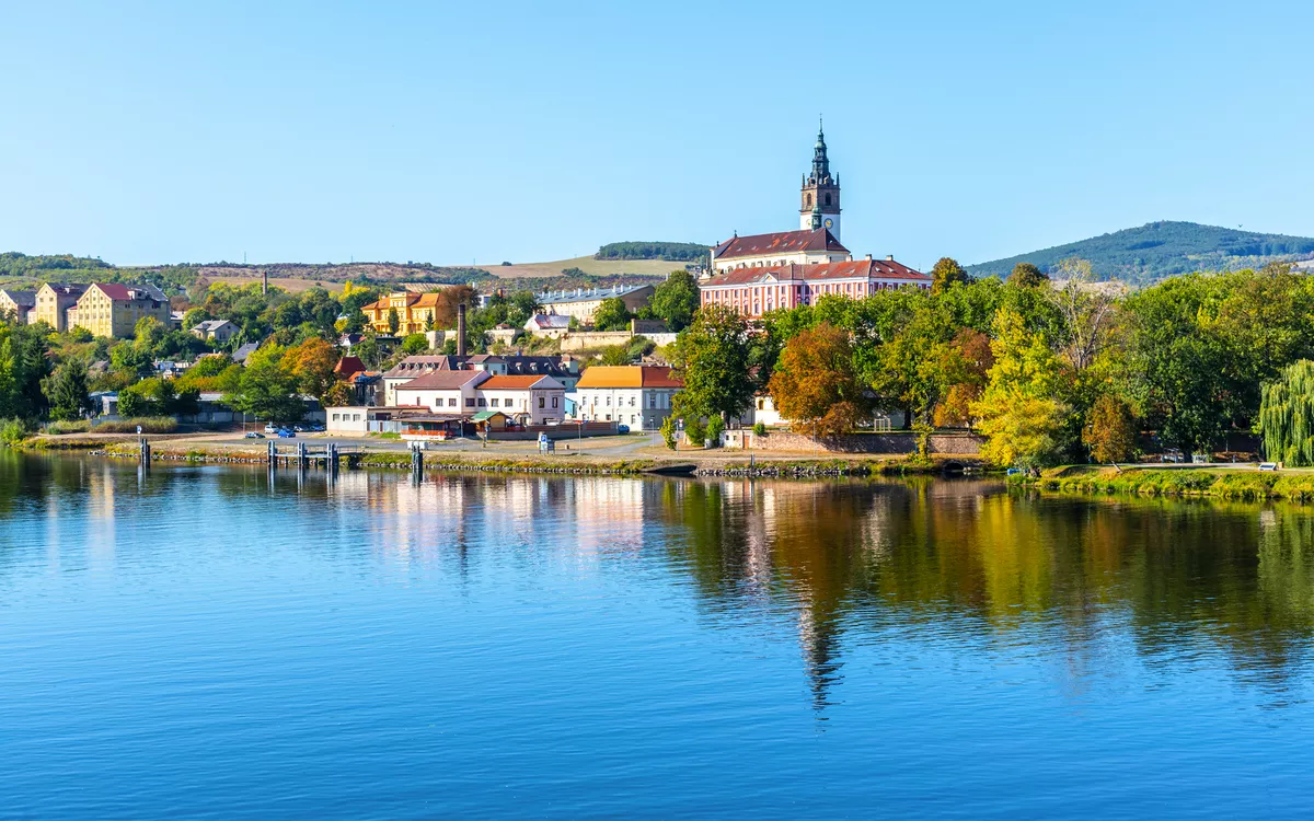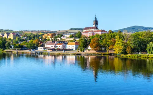 Nach dem Frühstück geht es zur nächsten Etappe Richtung Norden entlang der Moldau vorbei an mehreren Schlössern und Parkanlagen. Die Tour führt Sie über Kličany nach Mělník. Die Stadt am  Zusammenfluss von Elbe und Moldau mit dem Friedensplatz und dem Probstdom St. Peter und Paul gehört zu den Perlen an der Moldau.  4-Sterne-Hotel