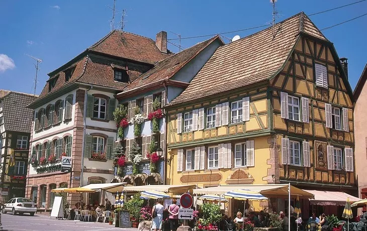 Heute werden Sie entlang der Elsässischen Weinstraße viele pittoreske Ortschaften, aber auch spannende Baudenkmäler entdecken. Von Colmar aus starten Sie in westliche Richtung und fahren über Sigolsheim und Kientzheim nach Kaysersberg, wo Sie die Burgruine der Stauferburg und die Kirche Sainte-Croix (Heiliges Kreuz) ansehen. Dann geht es weiter in das verträumte Städtchen Riquewihr, das zu einem der schönsten Dörfer Frankreichs gezählt wird. Die Tour führt Sie weiter nach Ribeauvillé, wo sie die Altstadt mit der Pfarrkirche St. Grégoirele-Grand erreichen. Als Höhepunkte erwartet Sie der Besuch eines Weingutes mit Verkostung. Nachdem Sie sich nun gestärkt haben, können Sie die letzte Etappe der Tour antreten. Von Ribeauvillé geht es über Ostheim und Houssen zurück nach Colmar.