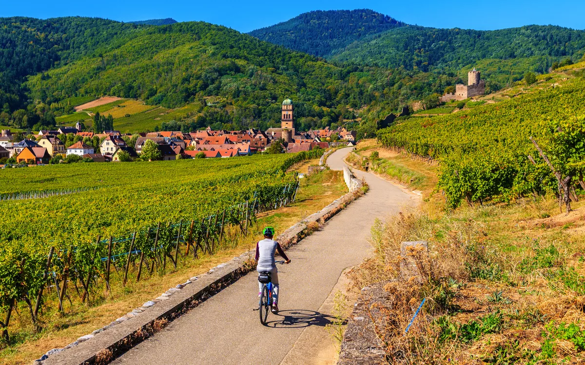 Lassen Sie sich verzaubern von Burgruinen aus dem Mittelalter, blumengeschmückten Dörfern, romanischen Abteikirchen, hügeligen Weinbergen und freundlichen Weinstuben, während Sie durch die sanfte Hügellandschaft der Elsass radeln.