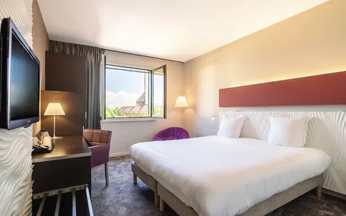 Sie wohnen im 4-Sterne-Hotel l'Europe in Colmar im südlichen Elsass. Das moderne Hotel liegt in semizentraler Lage von Colmar, nur etwa 3 km vom Stadtzentrum entfernt und bequem mit der Straßenbahn in ca. 20 Minuten erreichbar. Es erwarten Sie moderne und komfortable Zimmer, die mit Bad oder Dusche/WC, Föhn, Klimaanlage und Safe ausgestattet sind. Damit Sie sich rundum wohlfühlen, haben Sie ein Restaurant, eine gemütliche Hotelbar, eine Terrasse und eine 24-h-Rezeption. Zum Genuss am Abend zaubert der Küchenchef bekannte elsässische Spezialitäten, zur Stärkung in den Radtag erwartet Sie ein französisches Frühstücksbuffet.