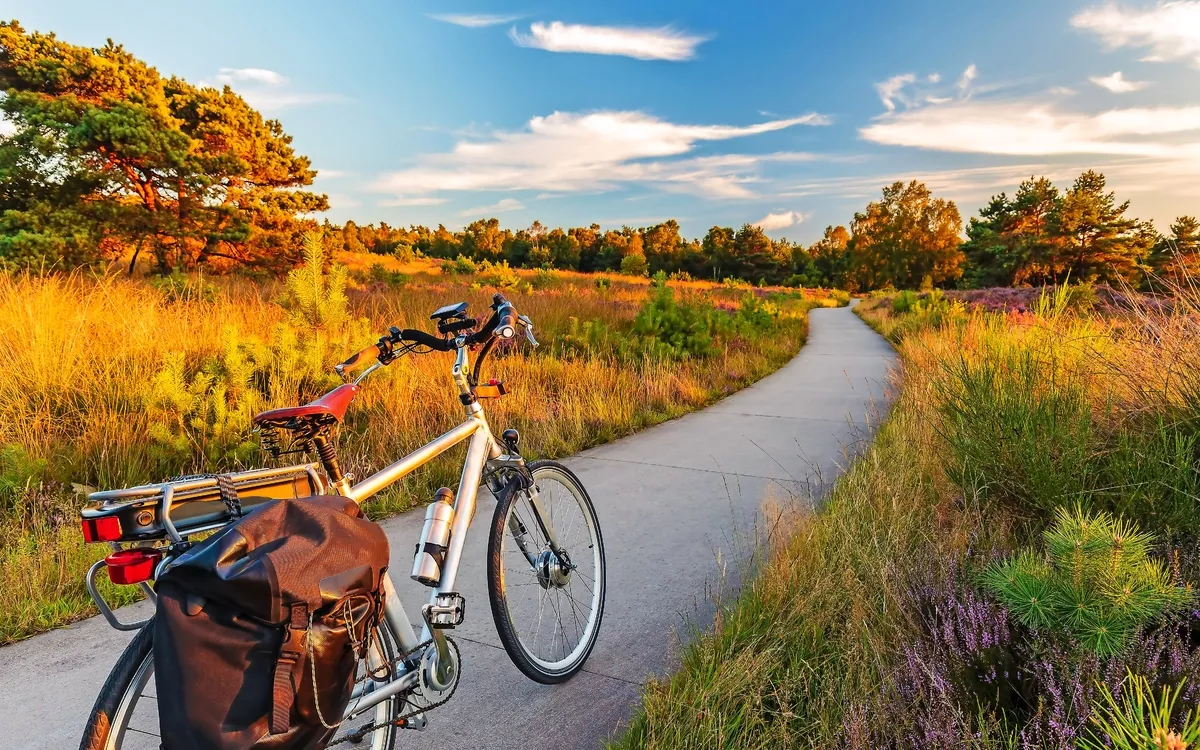 Elektrisches Fahrrad im niederländischen Nationalpark Die Veluwe
