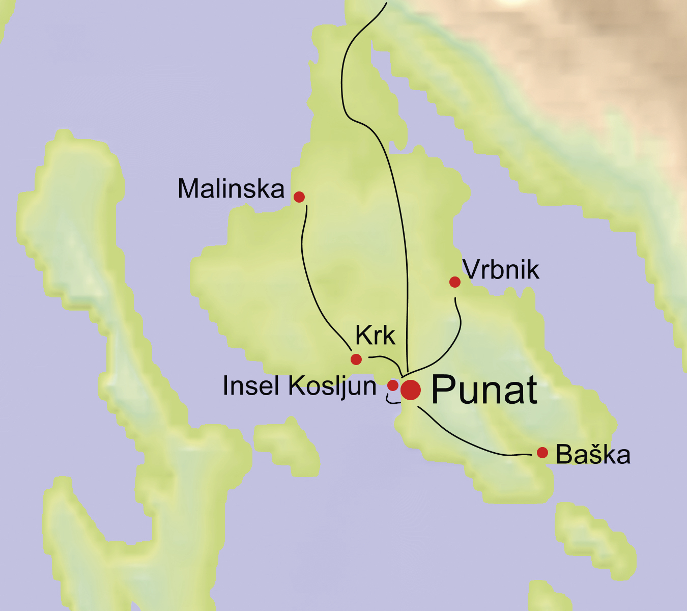 Punat - Insel Košljun - Vrbnik 40 km