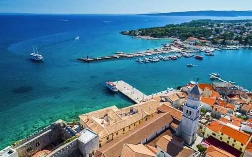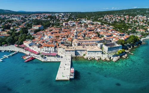 Die Insel Krk verfügt alleine über 220 km Küstenlänge und weiß in jeder Bucht ein Kleinod zu verbergen: die venezianische Stadt Krk, den beliebten Badeort Baška, die Hafenperle Malinska oder das weinselige Vrbenik.