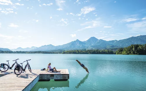 Nach dem Frühstück starten Sie Ihre Radtour ganz bequem direkt vom Hotel. Eine landschaftlich reizvolle Strecke führt Sie rund um den Faaker See. Sie haben keine wesentlichen Steigungen auf der Strecke, sodass Sie sich ganz dem herrlichen Seepanorama widmen können. Sie umrunden den beliebten Badesee und genießen die Aussicht auf die Karawanken und den Mittagskogel. Schließlich geht es per Rad wieder zurück zum Hotel.