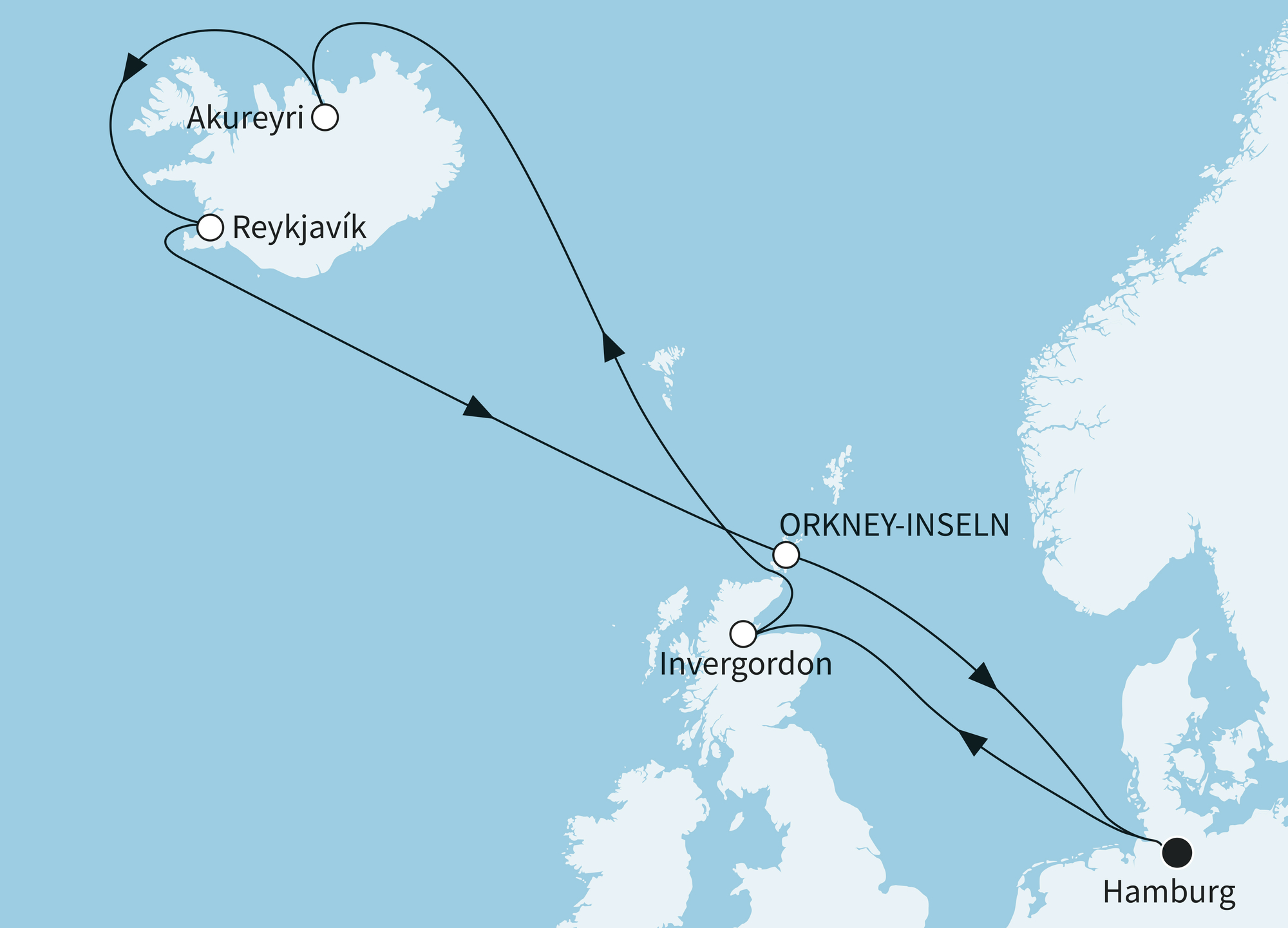 mit mit Invergordon, Akureyri, Reykjavik und Kirkwall / Orkney