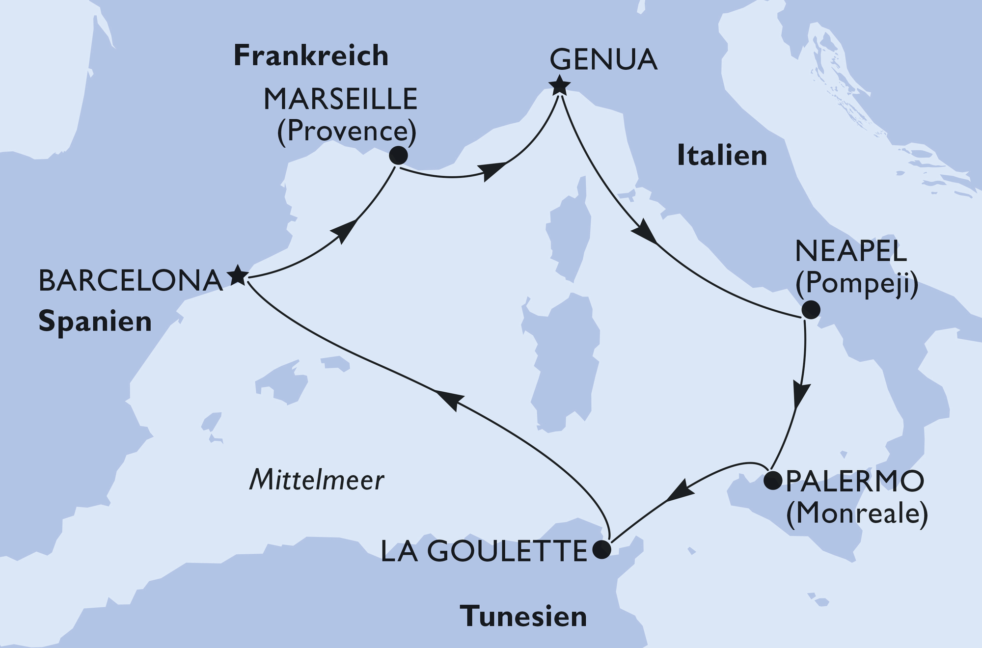 Ein Urlaub mit MSC Kreuzfahrten in Italien ist eine einmalige Gelegenheit, Palermo, die Hauptstadt der sizilianischen Insel, zu besuchen. Trotz des belebten und lauten Hafens bietet Palermo eine unvergleichliche Mischung aus Kunst und Architektur der Normannen, barocken Kirchen, mittelalterlichen Gassen und Märkten. Hier finden Sie die größte Dichte an Sehenswürdigkeiten auf ganz Sizilien und eine Altstadt, die nur von Rom an Größe übertroffen wird.