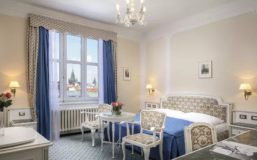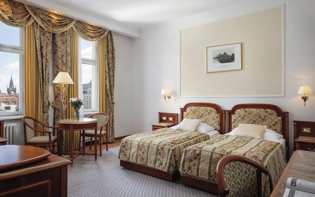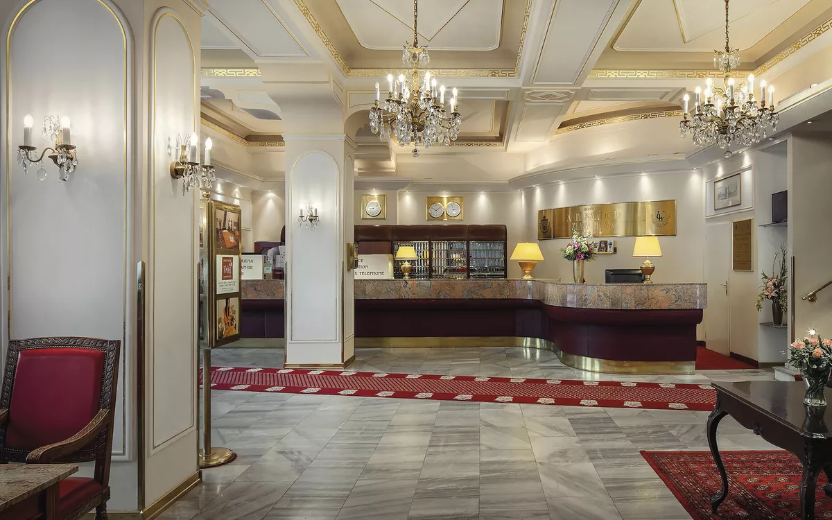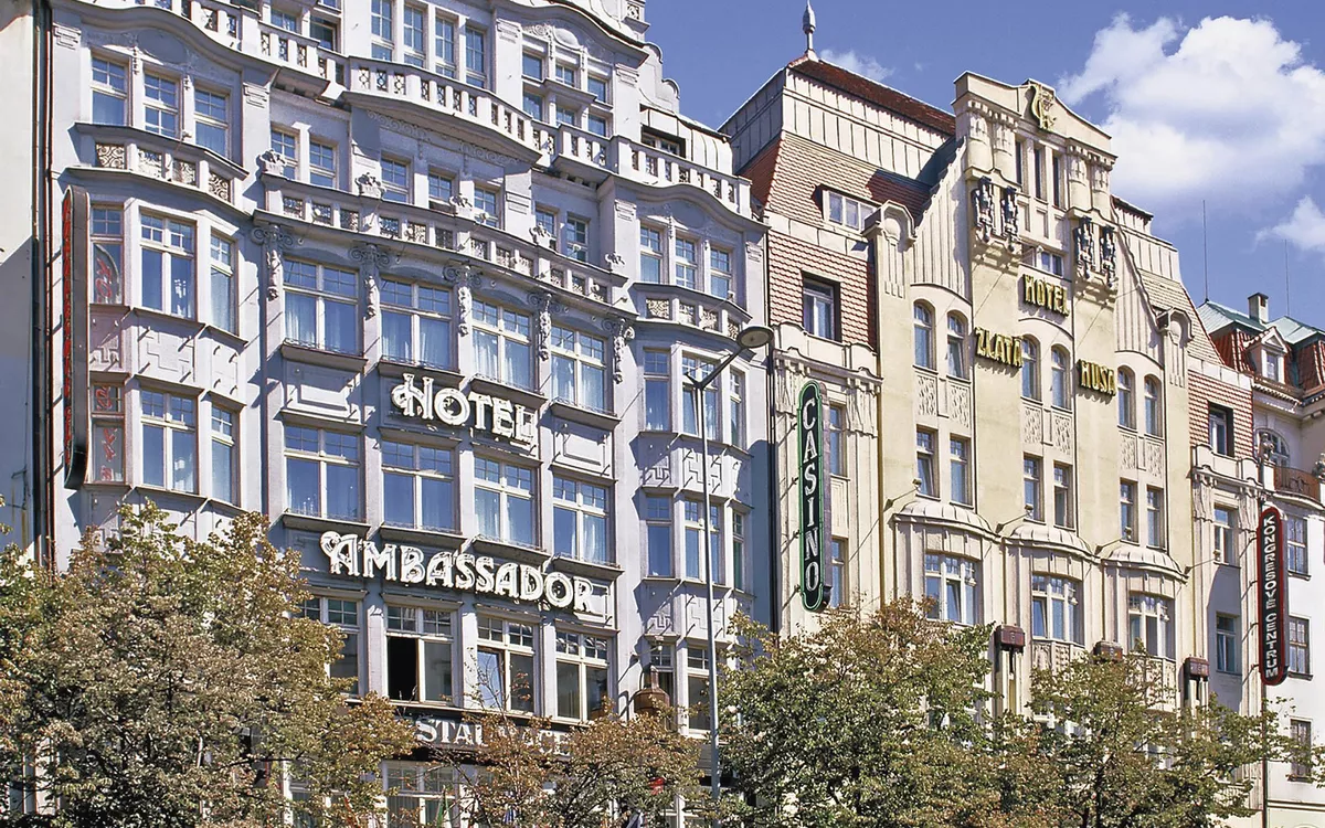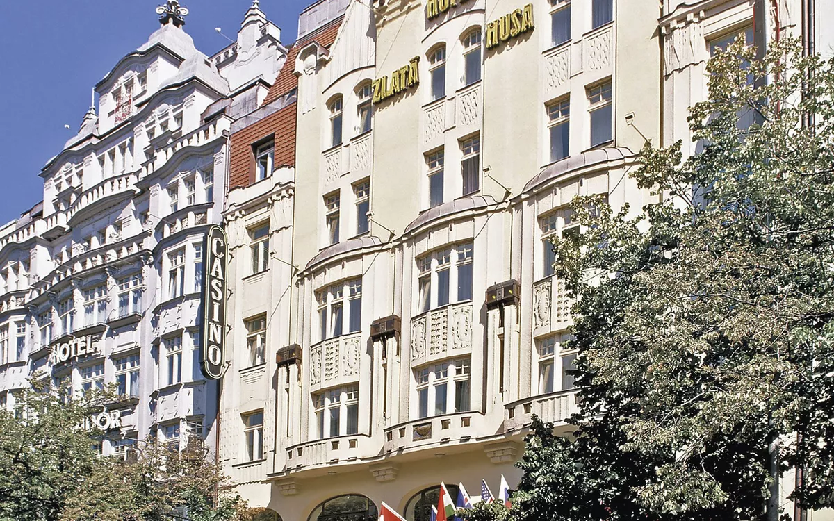 Das 5-Sterne-Hotel Ambassador Zlata Husa befindet sich direkt am Wenzelsplatz im kulturellen und historischen Zentrum von Prag. Alle Zimmer sind im Jugendstil eingerichtet und mit Bad oder Dusche/WC, Fön, Bademantel, Sat-TV, Radio, Safe, Minibar und Klimaanlage ausgestattet. Das Hotel verfügt über Restaurants, Bar und Café sowie einen Wellnessbereich mit Fitnesscenter (gegen Gebühr). Zusätzlich bietet das Hotel ein Spielcasino, einen Friseur-/Schönheitssalon und kostenfreies WLAN.