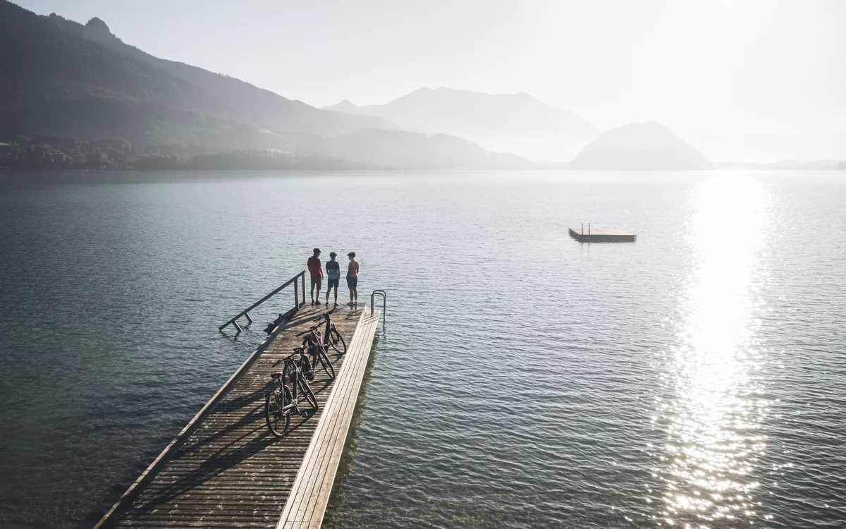 Heute radeln Sie direkt vom Hotel aus zur Fuschler Achee und ins charmante Thalgau. Dann geht es auf dem Salzkammergut-Radweg zum idyllisch gelgenen Fuschlsee; in St. Gilgen erreichen Sie den weitläufigen Wolfgangsee. Der Radweg führt entlang des Südufers nach Strobl und von dort nach St. Wolfgang auf der Nordseite des Sees, wo sich der Schafberg über dem Tal erhebt. Genießen Sie zum Abschluss Ihrer Tour bei einer Tasse Kaffee mit Kuchen das Ambiente rund um das berühmte Weiße Rössl.