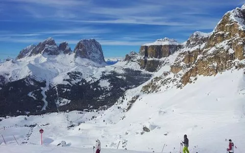 Die Dolomiten und der Dolomiti Superski – das sind zwei Begriffe, die das Herz eines jeden Skifahrers höher schlagen lassen. 478 Lifte und 1.200 Pistenkilometer, von denen 590 maschinell beschneibar sind, umfasst dieses Skigebiet, das sich in einer einmaligen landschaftlichen Gebirgskulisse präsentiert. In Cortina d'Ampezzo erleben Sie das absolute Wintersporterlebnis. Bis auf 2.930 m kann man per Skilift gelangen und anschließend die Abfahrten aller Schwierigkeitsgrade genießen. Selbstverständlich darf auch Corvara bei der Skisafari nicht fehlen. Das Hochabteital liegt mitten im Zentrum der einzigartigen Dolomitenlandschaft und bildet einen idealen Ausgangspunkt zur "Sellaronda", einer ausgedehnten Tagestour über vier Dolomitenpässe rund um den Sellastock. Natürlich haben Sie von Corvara aus die Möglichkeit, die „Königin der Dolomiten“, die Marmolada, zu befahren. Vertrauen Sie sich unserem Skireiseleiter an, der Ihnen je nach Witterung dieses einzigartige Skigebiet von seinen schönsten Seiten zeigen wird. Sie haben die Gelegenheit, mit Ihrem Skireiseleiter auch weitere spektakuläre Rundtouren durch die herrliche Bergwelt der Dolomiten zu machen wie z. B. die Tour von Cortina über den Falzarego-Pass nach San Cassiano (witterungsabhängig).