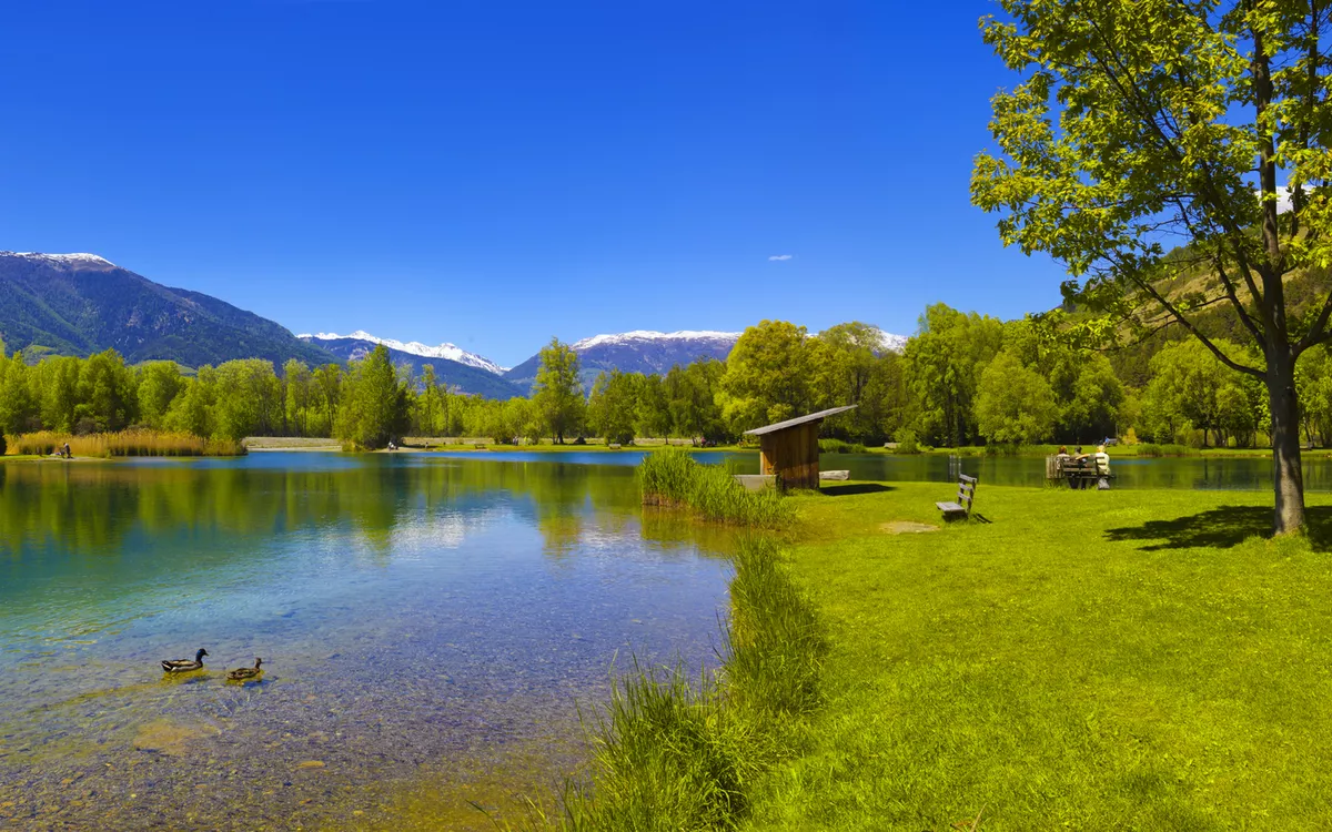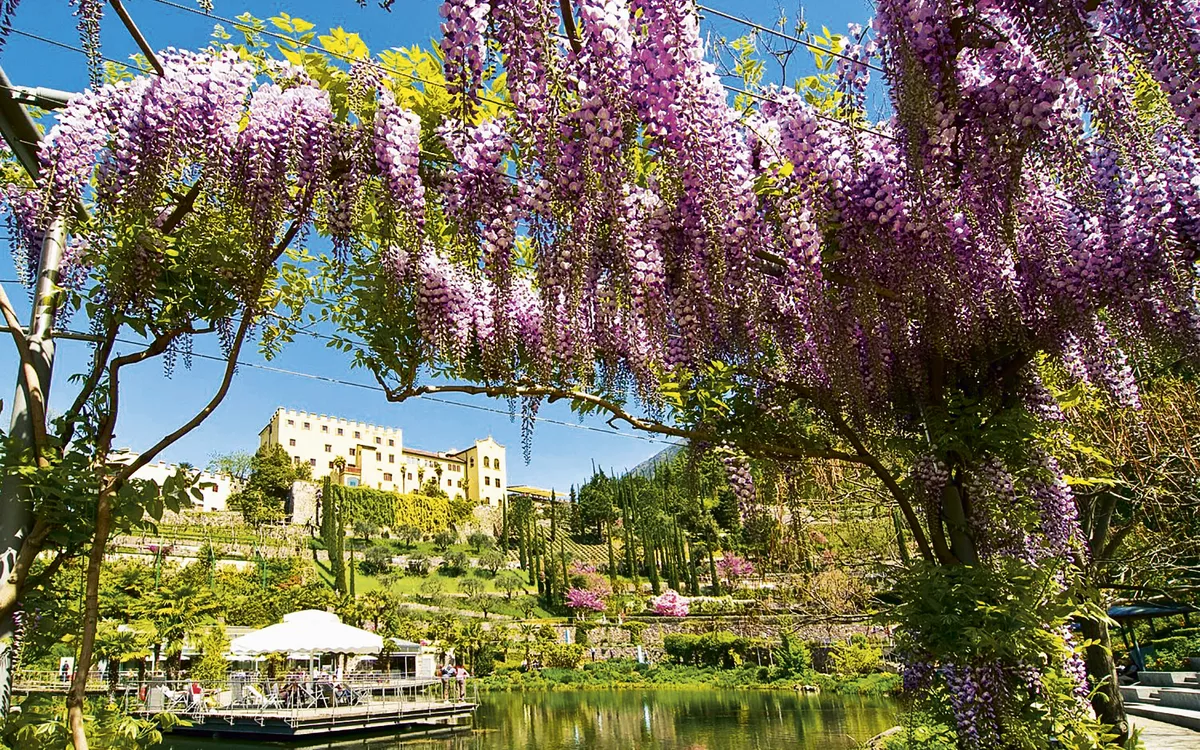 Duftende Obstplantagen und abwechslungsreiche Landschaft – Sie radeln auf der Via Claudia durch eine malerische Landschaft vom Reschensee über Meran zum Kalterer See.