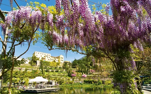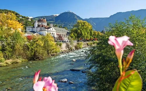 Abfahrt 7.00 Uhr Augsburg – Landsberg – Fernpass – Reschenpass. Sie beginnen die erste Rad-Etappe am Reschensee und radeln mit Blick auf den aus dem See ragenden Kirchturm, der als letztes Relikt des durch den Stausee versenkten Dorfes noch zu sehen ist, Richtung St. Valentin. Bald kommt das über dem Etschtal liegende Kloster Marienberg. Ab Mals führt der Radweg bergab durch die Obstplantagen Südtirols. Unterwegs sehen Sie Glurns mit der erhaltenen Stadtmauer. Ihr Radtag endet in Latsch. Transfer nach Meran, wo Sie mit Canapés und einem Begrüßungscocktail erwartet werden.