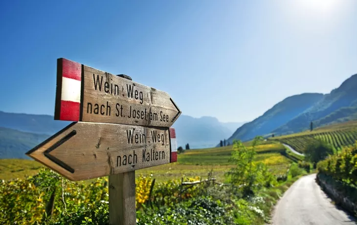 (ca. 27 km per Rad; Start: 262 höchster Punkt: 428 Ende: 219 m; meist eben, ein großer Anstieg zw. Bozen und Kaltern)