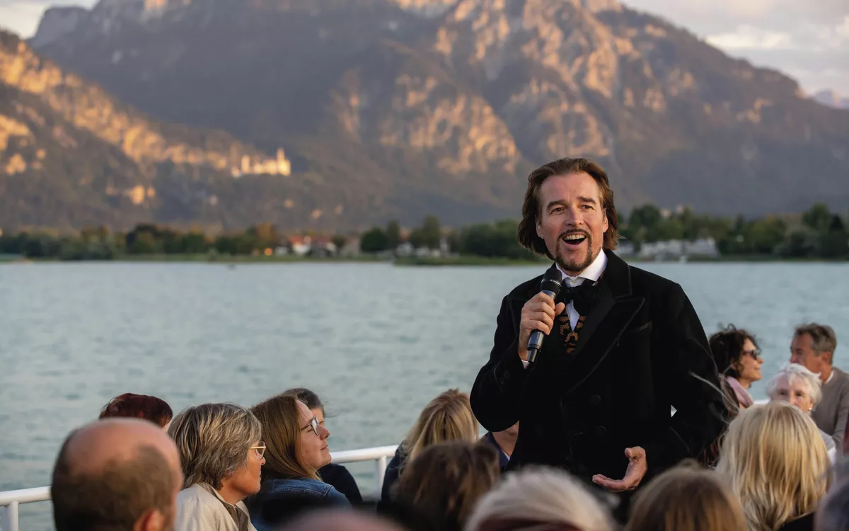 Wenn die Sonne hinter den Allgäuer Bergen versinkt und die Königsschlösser im Abendrot erstrahlen, verwandelt sich das Musical-Schiff auf dem Forggensee in eine schwimmende Bühne für große Gefühle. Hier erleben Sie die Darsteller in unmittelbarer Nähe – ein Konzerterlebnis, das unter die Haut geht.