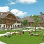 Zum Mittagessen werden Sie in der Gastronomie auf Gut Aiderbichl zu einem schmackhaften Gericht erwartet (fleischhaltige und vegetarische Variante).