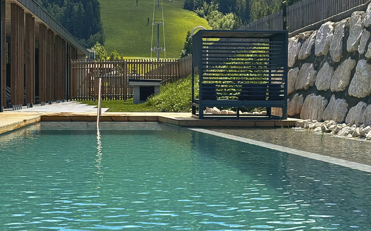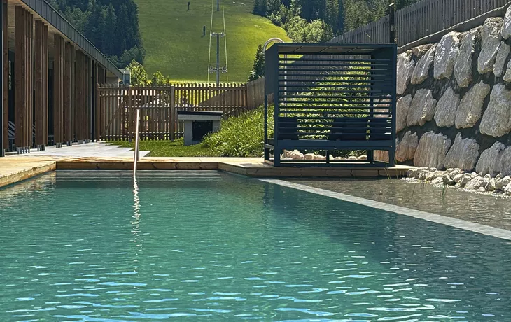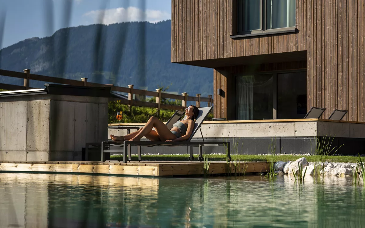 Schwimmteich, modern ausgestatteter Fitnessbereich. Rabatt auf E-Bike-Verleih im Ort.