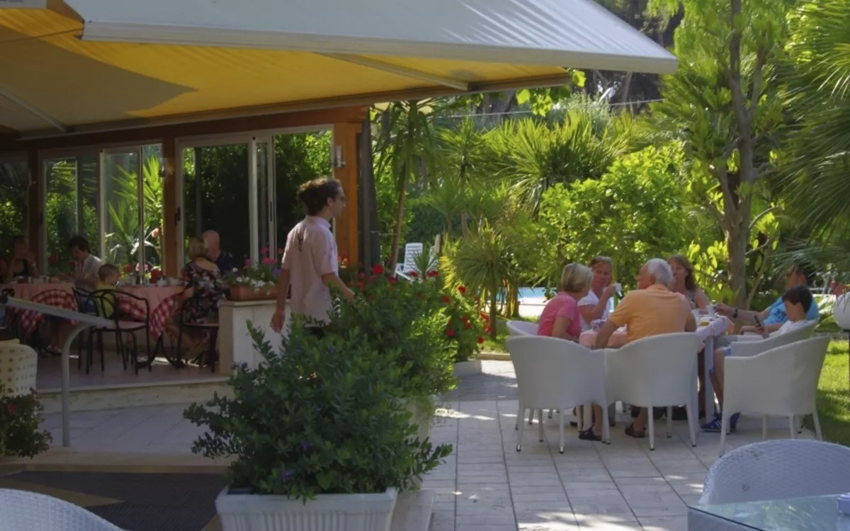 Von der Familie Muscella liebevoll geführt, 57 Zimmer, 4 Etagen, Lift, Restaurant mit Terrasse, Wlan, Pool, großer Garten mit Zugang zum Strand, 1 Sonnenschirm mit 1 Liege und 1 Liegestuhl am Strand inkl.; Örtl. Kat. 3 Sterne