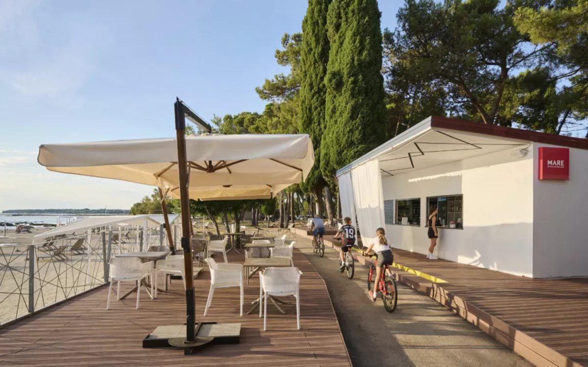 Ins Zentrum von Umag sind es ca. 3 km, regelmäßige Minibahnverbindung von Mai-September gegen Gebühr.