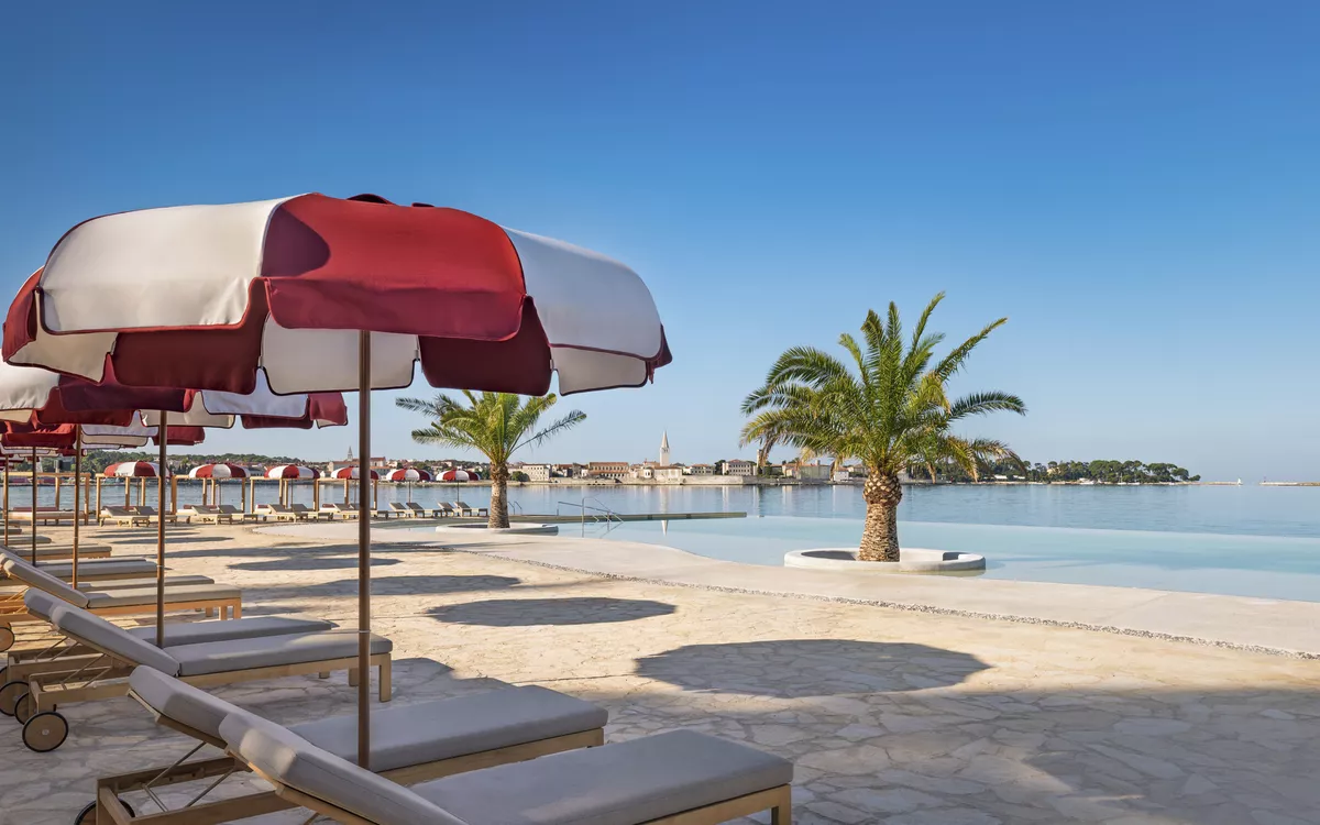 Das Resort ist von einem Pinienwald umgeben und liegt nur 130 m vom Strand und 10 Minuten von der Altstadt von Poreč entfernt. Die relativ ruhige Parklandschaft und der kiesige Strand mit herrlicher Aussicht auf Poreč bieten Ihnen ein erholsames Umfeld für einen unbeschwerten Urlaub.